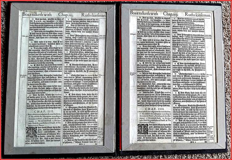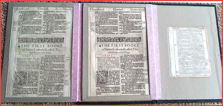 defective copy, neatly mounted and framed beside the comparable leaf with the