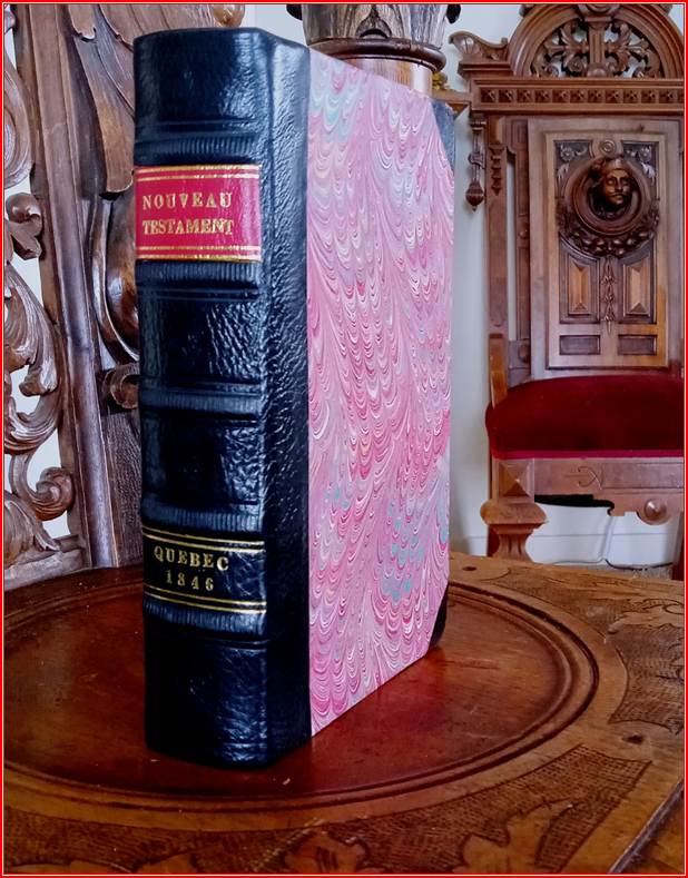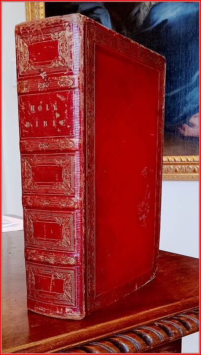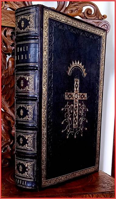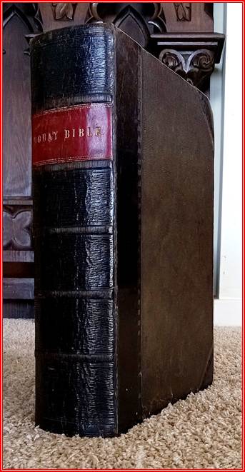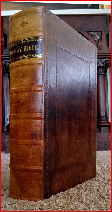 information about early editions of the English Catholic Bible. Actual first edition, not a reprint. Later full leather blind tooled binding with