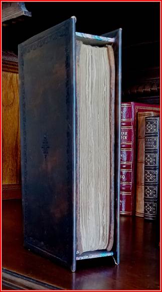 copy significantly larger and distinctive from its later reprints. Leather corners worn with some loss. Inner hinges repaired. Mild yellowing to interior.
